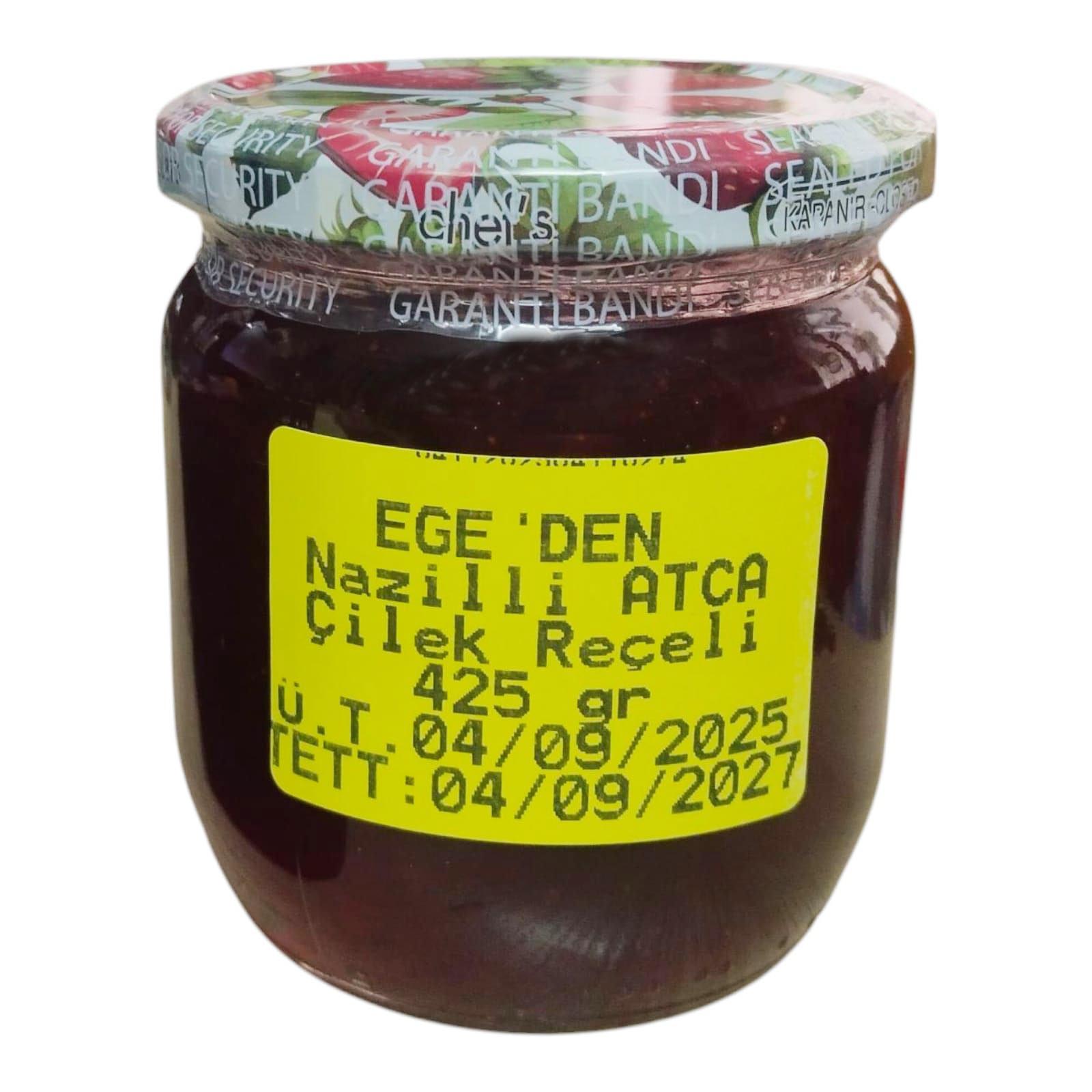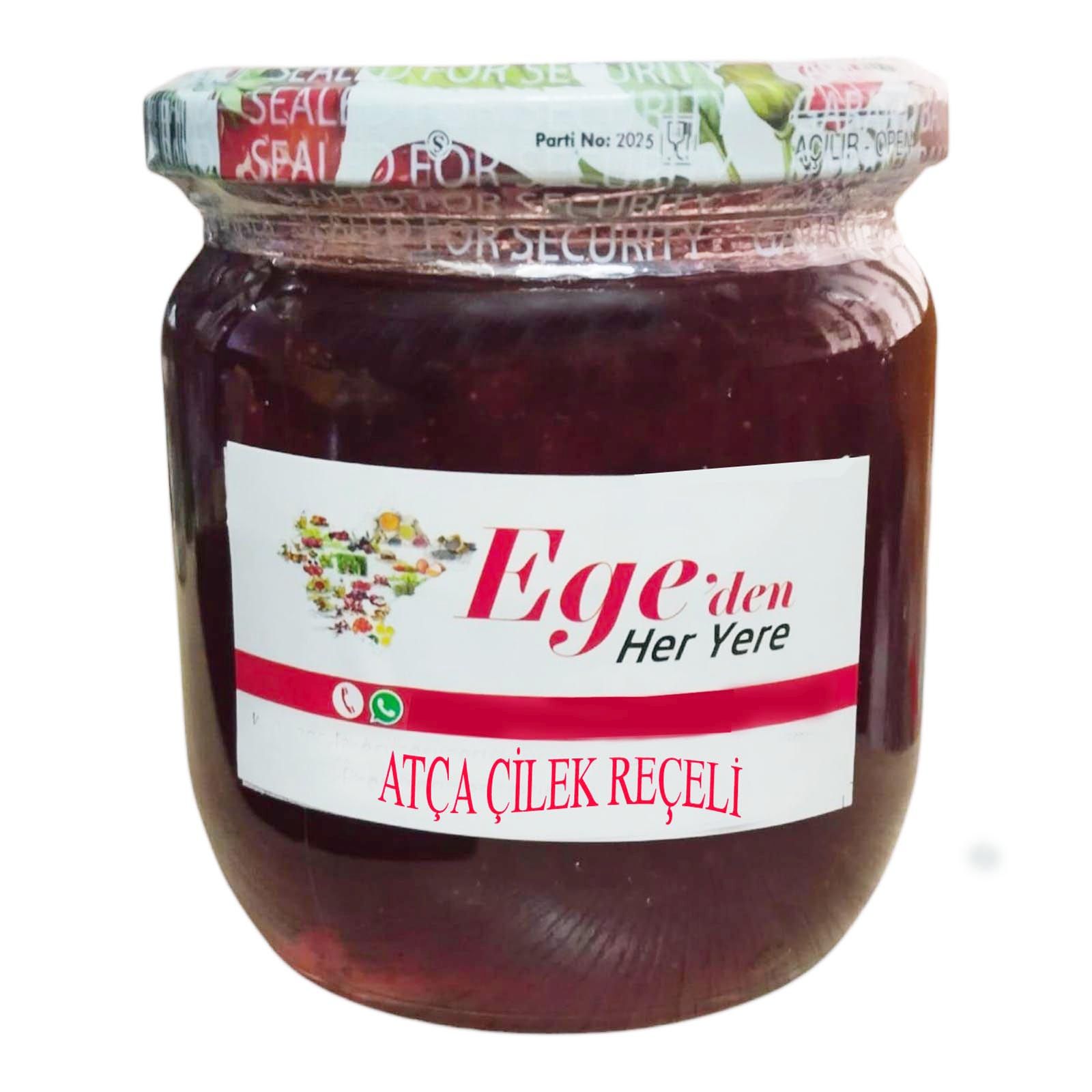 Atça ilçesi ve civarında yetiştiriciliği yapılan ve Mayıs ayı sonuna doğru olgunlaşan reçellik çileklerimizi yıkayıp temizledikten sonra doğruyoruz. Çileklerimizin üzerine şeker pancarı şekeri serpip bir gece suyu çıkması için bekletiyoruz. Ertesi gün çileklerimizi kaynatarak reçel haline getiriyoruz. Hazırlanan çilek reçellerimizi klasik yöntemlerle konserveliyoruz. Hiçbir koruyucu ve katkı maddesi kullanmıyoruz.