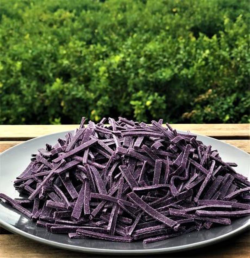 Doğal, bol yumurtalı ve ev yapımı katkısız Mor havuçlu eriştemiz, özenle seçilen