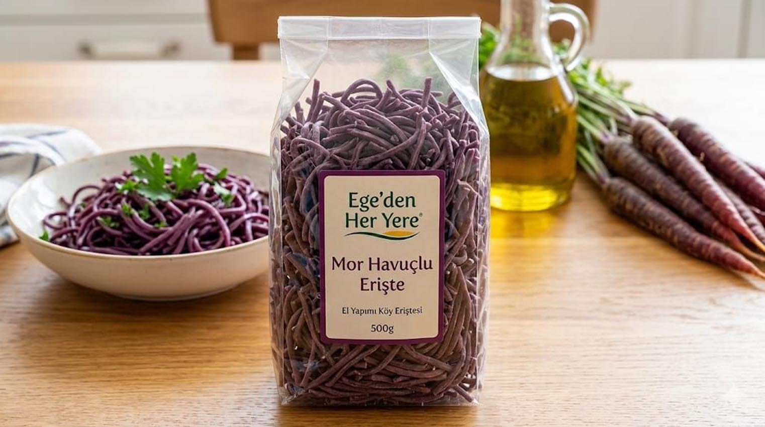 Mor Havuçlu erişte geleneksel tarzdaki erişte anlayışına alternatif olabilecek özel bir üründür.