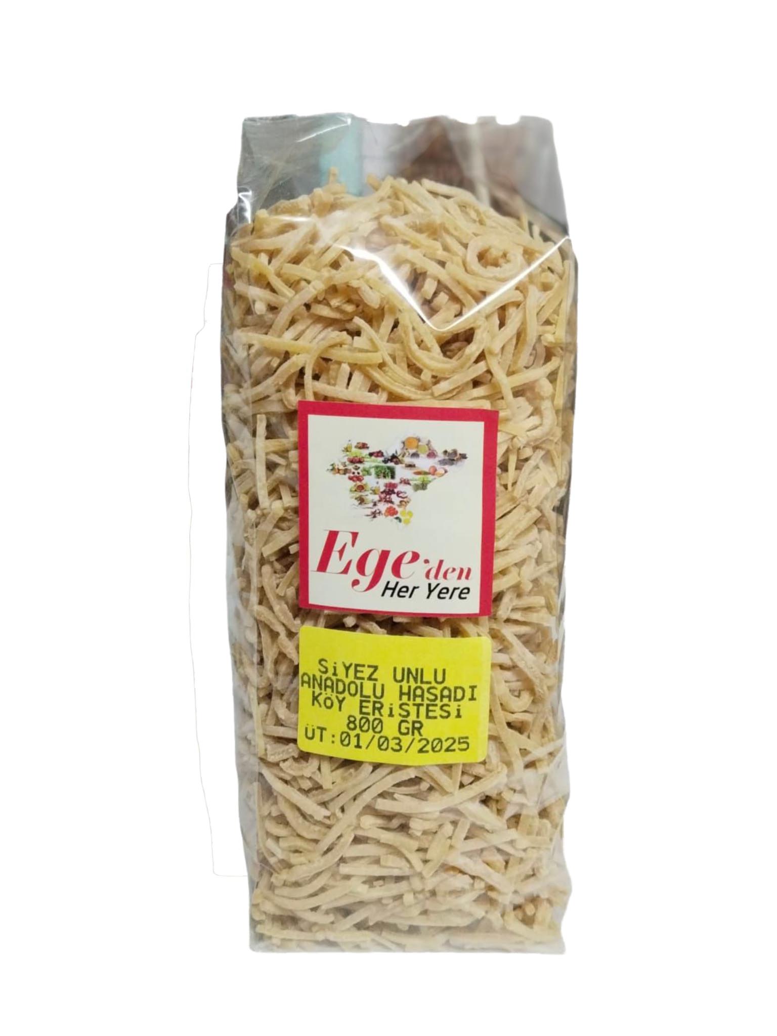 Kastamonu Siyez unundan üretilmiş, geleneksel kesme erişte lezzetini sofralarınıza taşıyan 800 gramlık paket.